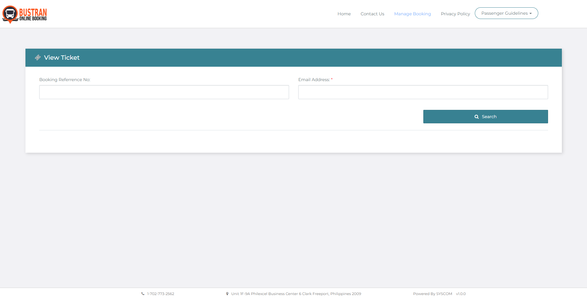 2. On the Manage Booking dashboard, enter your booking details such as Booking Reference Number, Email Address, and/or Ticket Number/Control Number. Then click Search.